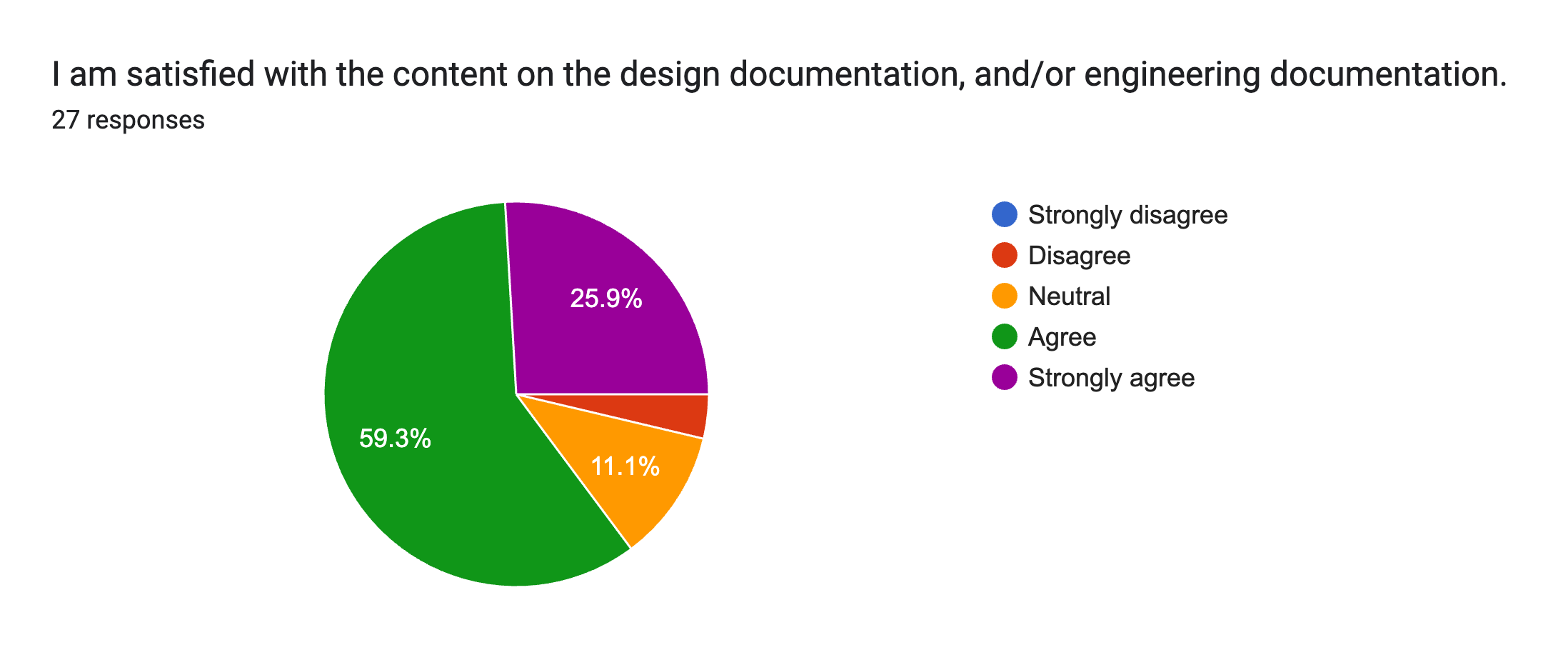 Since Q2, we are up 29% on our satisfaction score of the documentation, with only 1 engineering disagreement on the content we are providing. Currently the docs are much more design-focused which could explain some negativity, but a strongly agree increase means we are heading in a good direction.