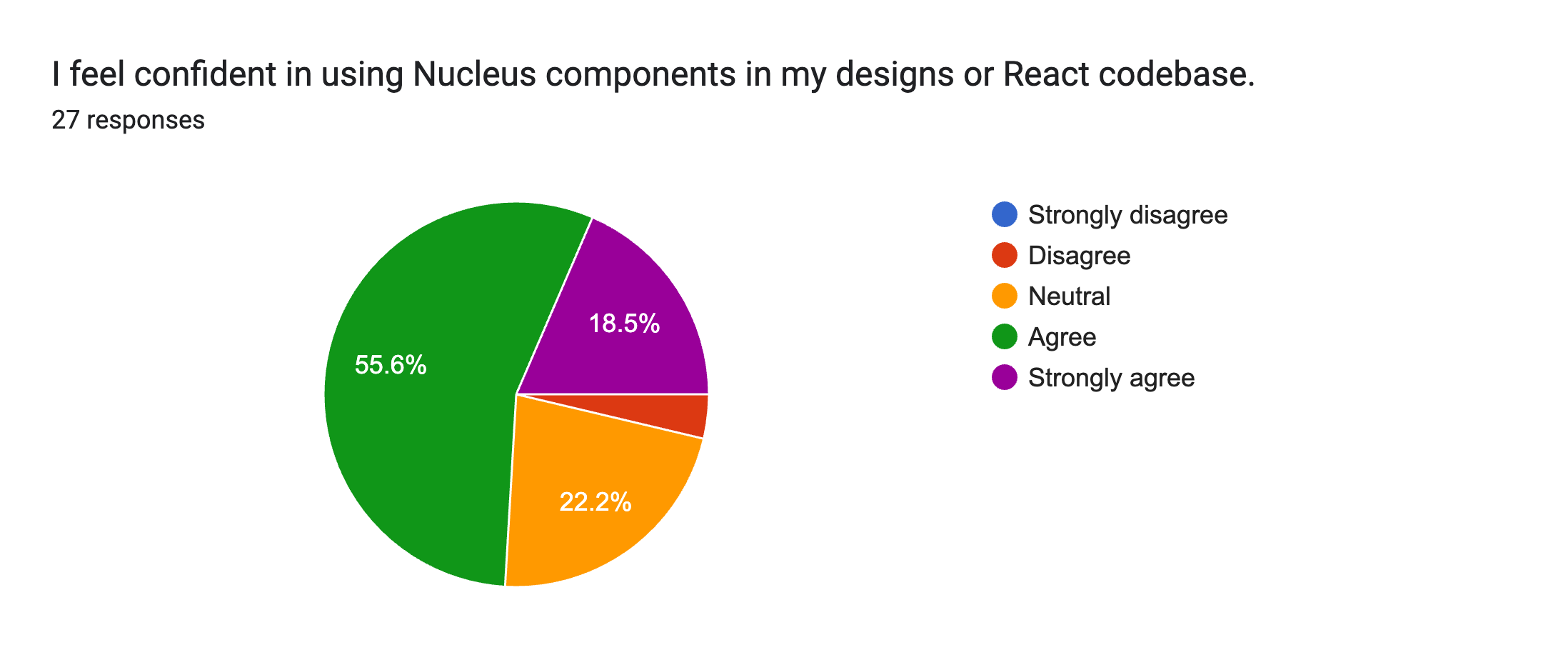 This quarter we decided to combine the survey to make it easier to digest the thoughts of both both design and engineering. This is resulted in a larger volume of responses which has given us even more valuable insights into how Nucleus is perceived by teams. As previously, we'll begin by taking a look at some high level results from the Q3 Nucleus Design and Developer survey (thank you to everyone who contributed).